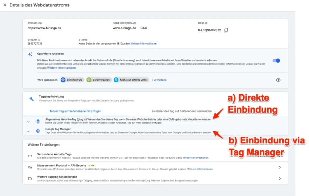 Abbildung 7 GA4 Tag direkt oder via Tagmanager einbinden